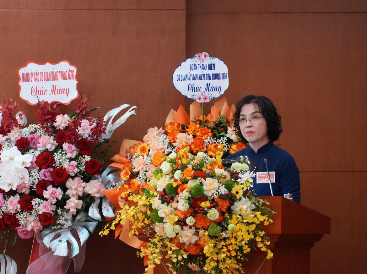Đồng chí Trần Thị Hiền, Phó Chủ nhiệm Ủy ban Kiểm tra Trung ương, Bí thư Đảng ủy Cơ quan Ủy ban Kiểm tra Trung ương nhiệm kỳ 2025-2030 thay mặt Ban Chấp hành phát biểu nhận nhiệm vụ.
