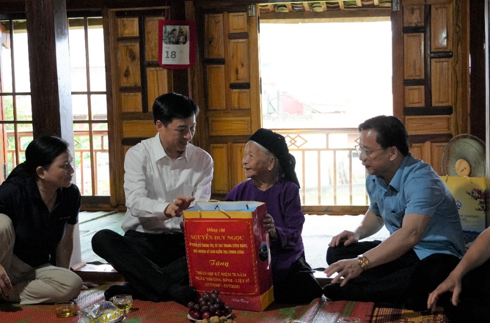 Tại các điểm đến, đồng chí Nguyễn Duy Ngọc, Ủy viên Bộ Chính trị, Bí thư Trung ương Đảng, Chủ nhiệm Ủy ban Kiểm tra Trung ương cùng các đồng chí trong Đoàn công tác đã ân cần thăm hỏi sức khỏe, cuộc sống, gia đình Mẹ Việt Nam anh hùng, người có công, gia đình chính sách; bày tỏ sự tri ân sâu sắc đối với những cống hiến, hy sinh của các thương bệnh binh, gia đình liệt sỹ trong sự nghiệp đấu tranh giải phóng dân tộc, thống nhất đất nước. Đồng thời, mong muốn các gia đình tiếp tục phát huy phẩm chất cách mạng, là tấm gương sáng để con, cháu học tập, noi theo, góp phần tích cực xây dựng quê hương ngày càng giàu mạnh.