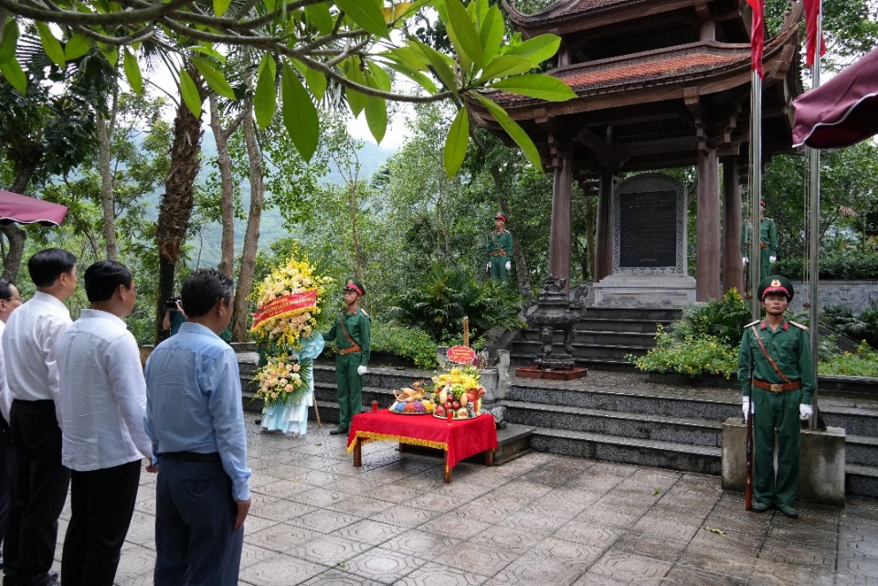 Đồng chí Nguyễn Duy Ngọc và các đại biểu tưởng niệm Đại tướng Võ Nguyên Giáp tại Di tích đồi Pụ Đồn.