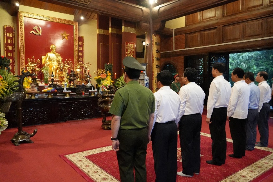 Đồng chí Nguyễn Duy Ngọc cùng Đoàn công tác dâng hương tại Nhà tưởng niệm Chủ tịch Hồ Chí Minh.