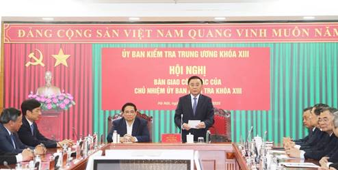 Chiều 7/11/2025, tại Hà Nội, Ủy ban Kiểm tra Trung ương tổ chức Hội nghị bàn giao công tác của Chủ nhiệm Uỷ ban Kiểm tra Trung ương khóa XIII. Thủ tướng Phạm Minh Chính và Thường trực Ban Bí thư Trần Cẩm Tú dự, chỉ đạo Hội nghị.