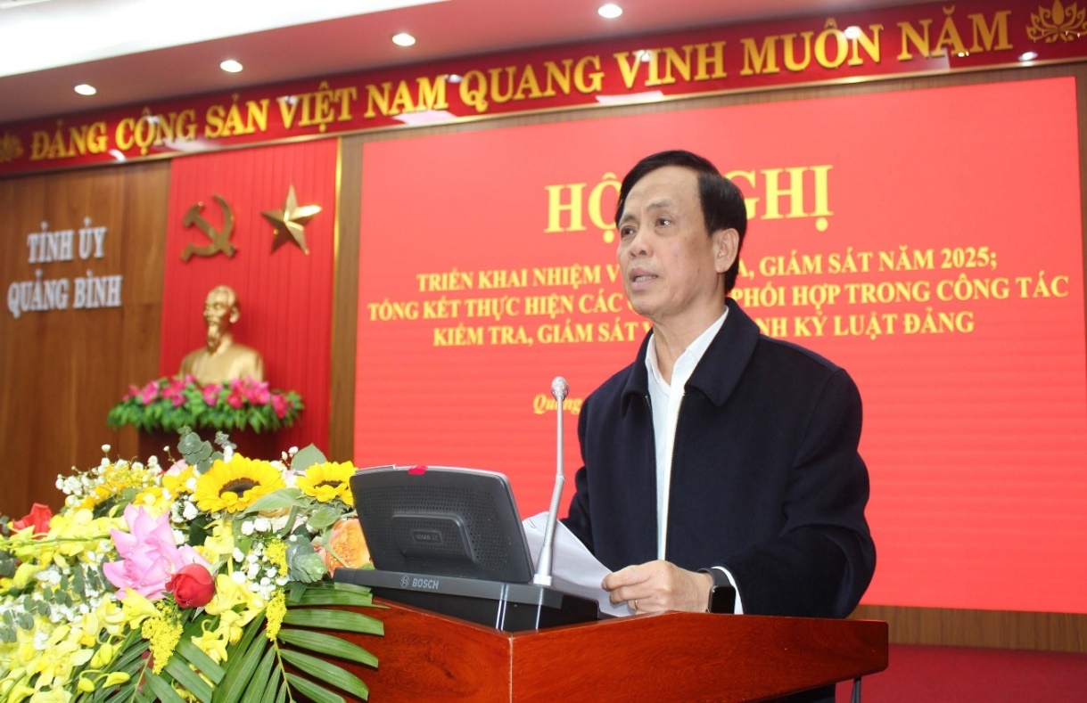 Tỉnh ủy Quảng Bình triển khai nhiệm vụ công tác kiểm tra, giám sát năm 2025 và tổng kết thực hiện các quy chế phối hợp trong công tác kiểm tra, giám sát và thi hành kỷ luật đảng
