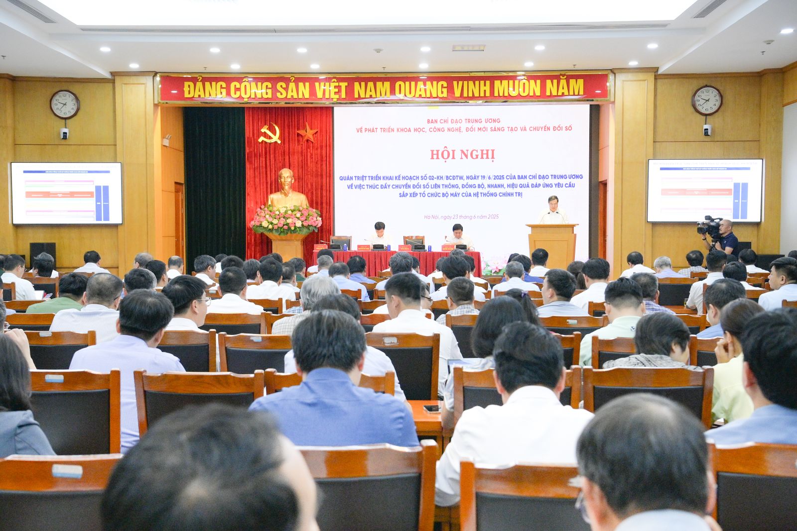 Tại các cơ quan đảng ở Trung ương, đến ngày 23/6/2025, Văn phòng Trung ương Đảng đã triển khai kế hoạch trang bị thiết bị đầu cuối cho cán bộ các ban đảng Trung ương và máy tính bảng phục vụ tác nghiệp cho cán bộ cấp cục, vụ, bảo đảm điều kiện tối thiểu cho việc tiếp cận, sử dụng các phần mềm và dịch vụ số nội bộ.