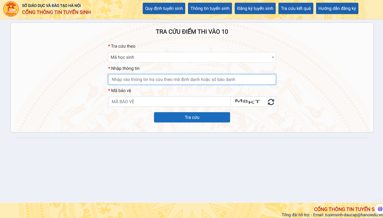 Thí sinh tra cứu điểm thi, điểm chuẩn vào lớp 10 trên Cổng thông tin điện tử của Sở Giáo dục và Đào tạo Hà Nội (https://hanoi.edu.vn), Cổng thông tin tuyển sinh đầu cấp của thành phố (https://tsdaucap.hanoi.gov.vn).