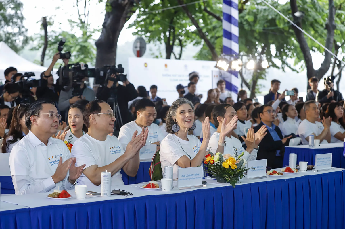 Đại diện các tổ chức quốc tế, bà Ramla Khalidi - Trưởng đại diện thường trú UNDP và bà Angela Pratt - Trưởng đại diện WHO tại Việt Nam bày tỏ tình cảm với Thủ đô Hà Nội và cam kết đồng hành, hỗ trợ Việt Nam trong nỗ lực vượt qua thách thức ô nhiễm không khí. Hai bà khẳng định, UNDP và WHO sẽ tiếp tục phối hợp chặt chẽ với các cơ quan Việt Nam nhằm hướng tới tương lai khỏe mạnh, công bằng và bền vững cho mọi người dân.