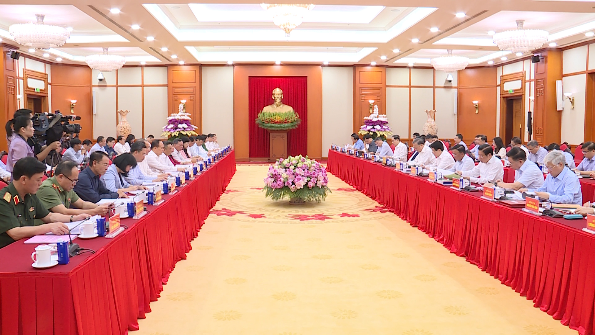 Bộ Chính trị làm việc với Ban Thường vụ Thành ủy Hà Nội và Thành ủy Thành phố Hồ Chí Minh