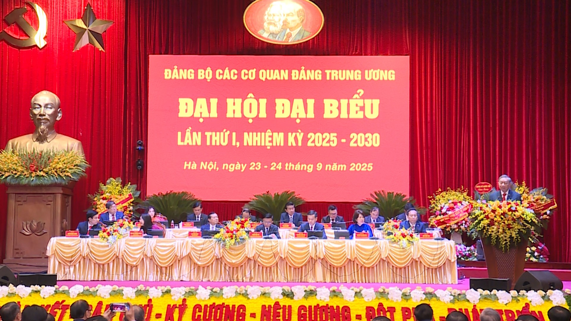 (ĐCSVN) - Sáng 24/9, tại Hà Nội, Đại hội đại biểu Đảng bộ các cơ quan Đảng Trung ương lần thứ I, nhiệm kỳ 2025-2030 đã khai mạc trọng thể với sự tham dự của 293 đại biểu chính thức đại diện cho hơn 8.700 đảng viên của 14 Đảng bộ trực thuộc Đảng bộ các cơ quan Đảng Trung ương. Tổng Bí thư Tô Lâm dự và phát biểu chỉ đạo Đại hội.