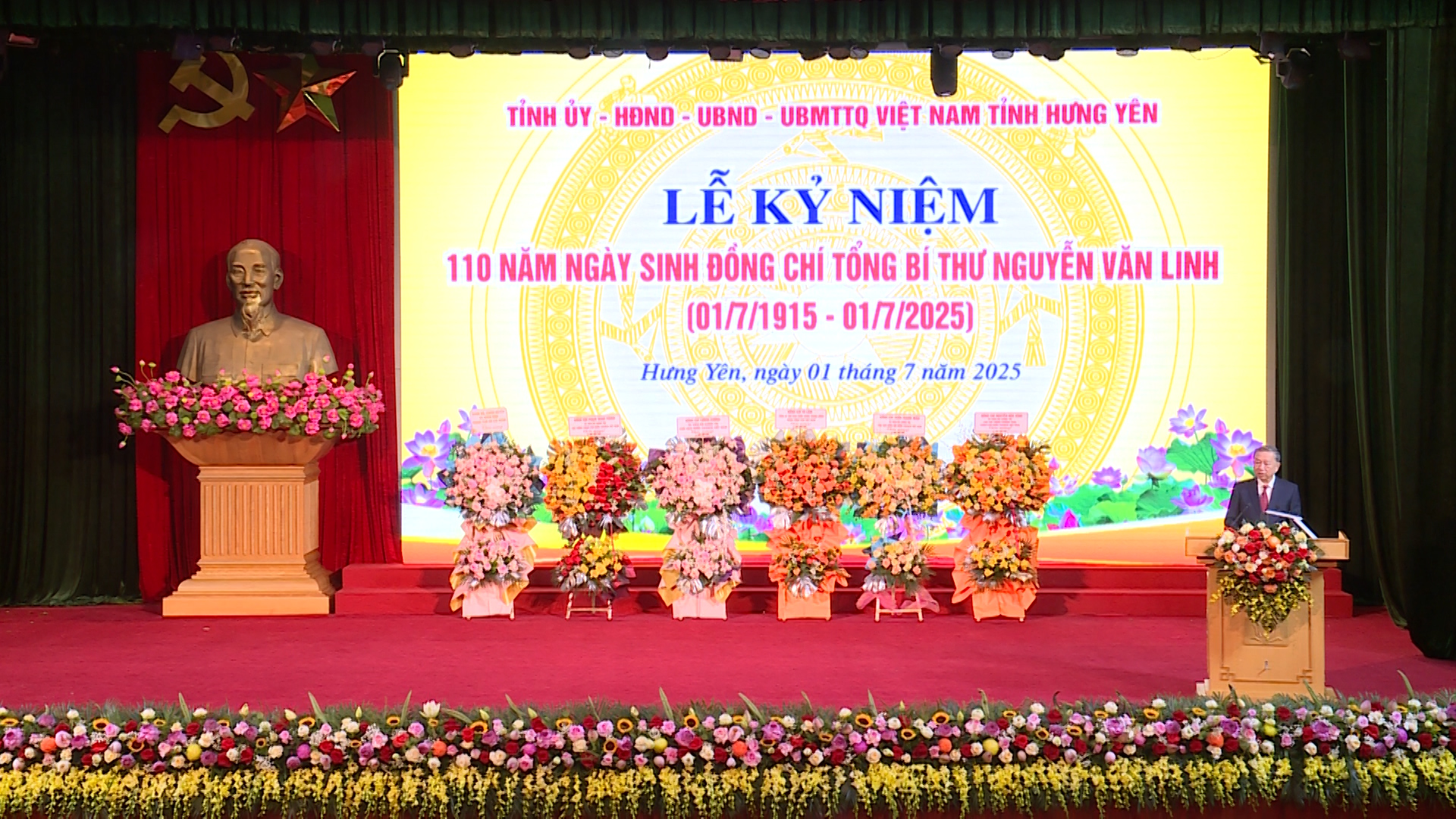 (ĐCSVN) - Sáng 1/7, Tỉnh ủy, HĐND, UBND, Ủy ban Trung ương MTTQ Việt Nam tỉnh Hưng Yên long trọng tổ chức lễ kỷ niệm 110 năm ngày sinh Tổng Bí thư Nguyễn Văn Linh (1/7/1915-1/7/2025) - một người cộng sản kiên trung, một nhà lãnh đạo tài năng, một tấm gương sáng ngời về bản lĩnh cách mạng và đặc biệt là người đã khởi xướng và lãnh đạo công cuộc đổi mới đất nước. Tổng Bí thư Tô Lâm tới dự và phát biểu tại buổi lễ.