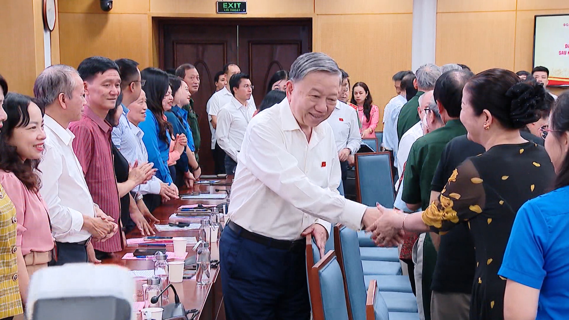(ĐCSVN) - Chiều 2.7, Tổng Bí thư Tô Lâm cùng các đại biểu Quốc hội thuộc Đoàn đại biểu Quốc hội TP Hà Nội đã tiếp xúc cử tri 11 phường thuộc Đơn vị bầu cử số 1 TP Hà Nội (gồm: Ba Đình, Ngọc Hà, Giảng Võ, Đống Đa, Kim Liên, Văn Miếu - Quốc Tử Giám, Láng, Ô Chợ Dừa, Hai Bà Trưng, Vĩnh Tuy và Bạch Mai) để báo cáo kết quả Kỳ họp thứ 9, Quốc hội khóa XV.