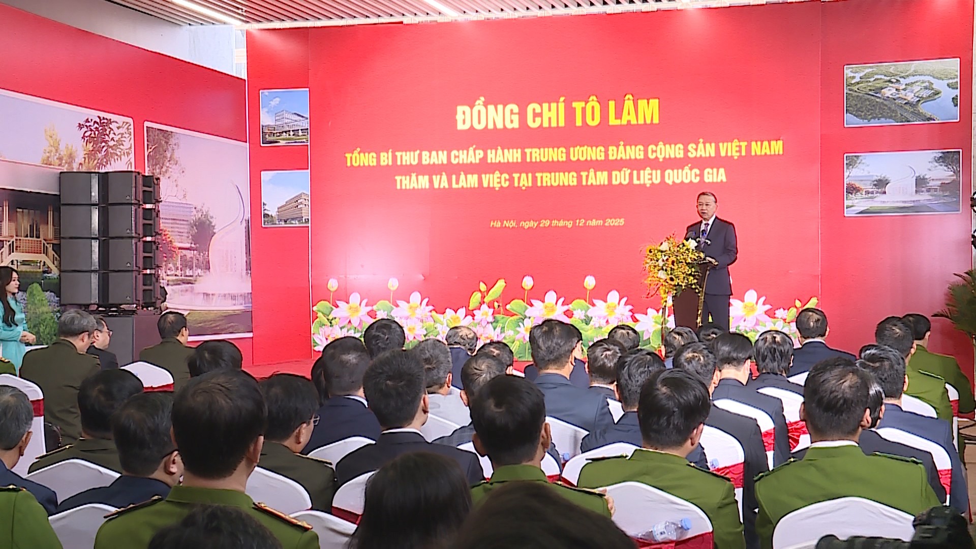 Chiều 29/12, Tổng Bí thư Tô Lâm đã đến thăm, làm việc tại Trung tâm Dữ liệu Quốc gia, Bộ Công an, Khu công nghệ cao Hòa Lạc, xã Hòa Lạc, TP Hà Nội.