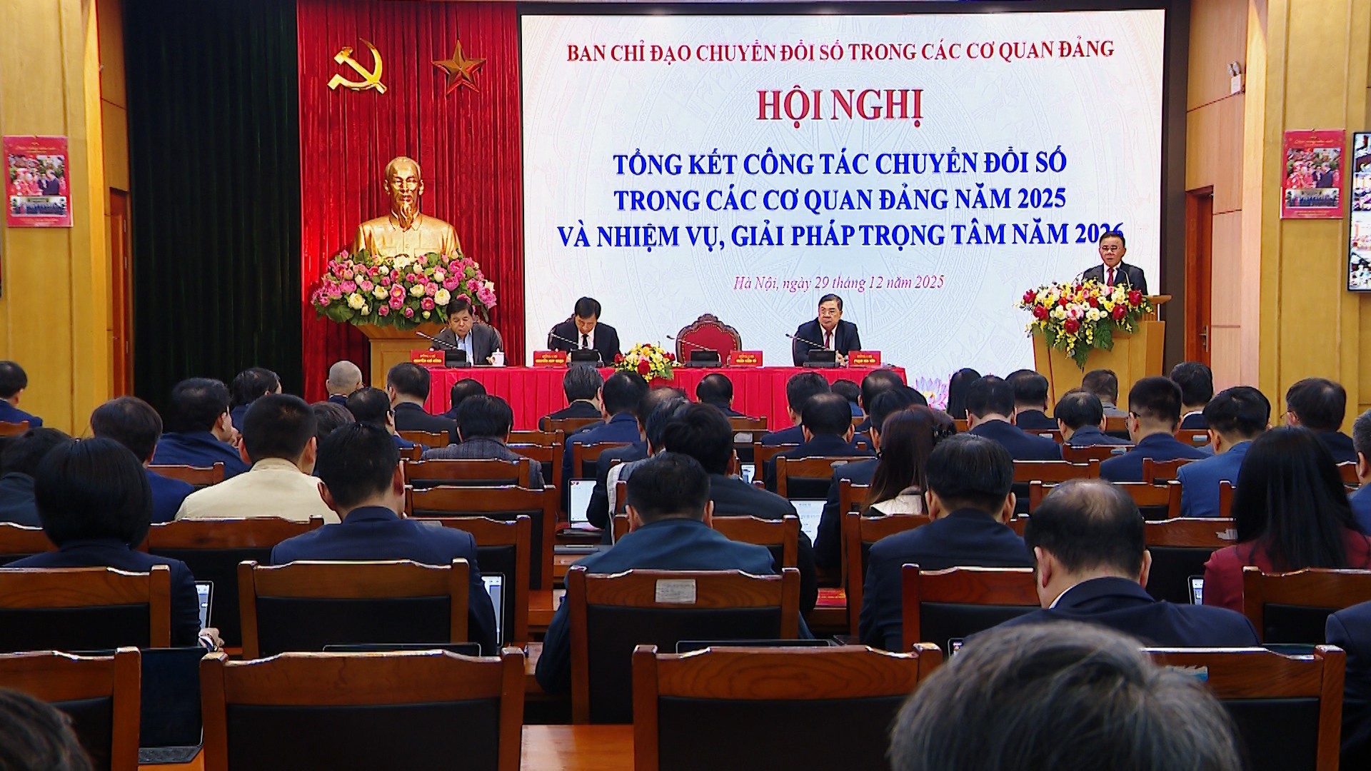(ĐCSVN) - Sáng 29-12, Ban chỉ đạo chuyển đổi số trong các cơ quan Đảng tổ chức Hội nghị tổng kết công tác chuyển đổi số trong các cơ quan Đảng năm 2025 và nhiệm vụ, giải pháp năm 2026 theo hình thức trực tiếp tại trụ sở Văn phòng Trung ương Đảng, kết nối tới hơn 3.000 điểm cầu trong toàn quốc. Đồng chí Trần Cẩm Tú, Ủy viên Bộ Chính trị, Thường trực Ban Bí thư, Trưởng ban chỉ đạo chủ trì hội nghị.