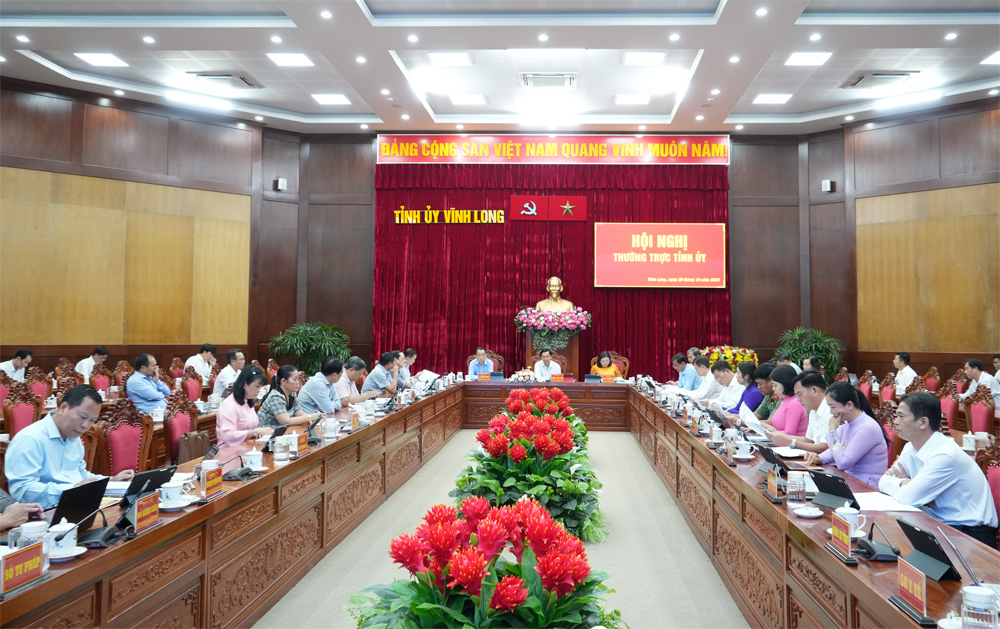 (Vinhlong.gov.vn) - Sáng 20/10/2025, Thường trực Tỉnh ủy tổ chức Hội nghị nghe báo cáo, cho ý kiến Đề án hợp nhất các tổ chức hội do Đảng, nhà nước giao nhiệm vụ; chuẩn bị triển khai, quán triệt, cụ thể hóa thực hiện Nghị quyết Đại hội đại biểu Đảng bộ tỉnh lần thứ I; các Tờ trình của Đảng ủy HĐND, Đảng ủy UBND tỉnh xin chủ trương chuẩn bị trình kỳ họp chuyên đề HĐND tỉnh lần thứ 2. Bí thư Tỉnh ủy Trần Văn Lâu, Phó Bí thư Thường trực Tỉnh ủy Hồ Thị Hoàng Yến, Phó Bí thư Tỉnh ủy - Chủ tịch UBND tỉnh Lữ Quang Ngời chủ trì hội nghị.