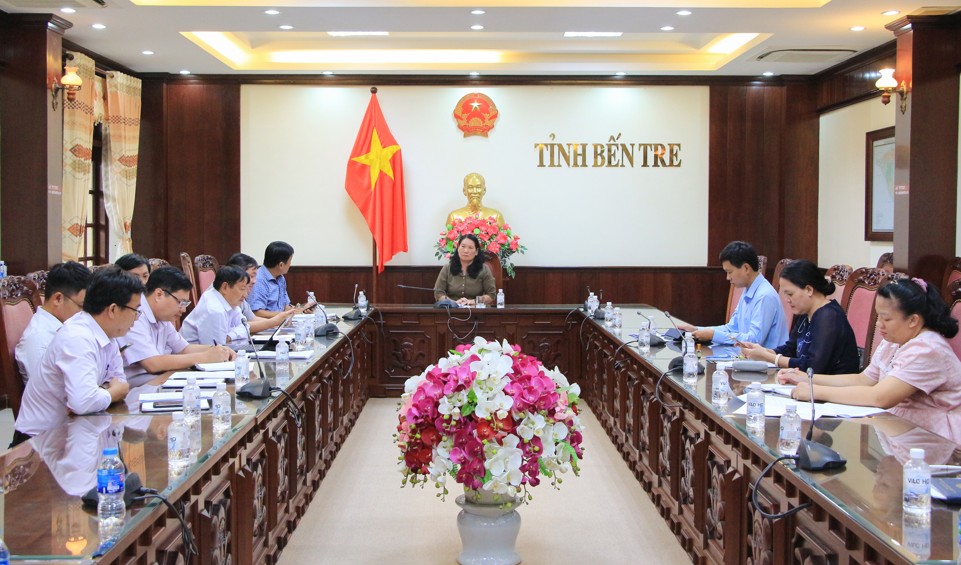 Phó Chủ tịch UBND tỉnh Nguyễn Thị Bé Mười chủ trì cuộc họp nghe báo cáo tiến độ thực hiện các dự án lĩnh vực văn hóa – xã hội trên địa bàn tỉnh Bến Tre (cũ).