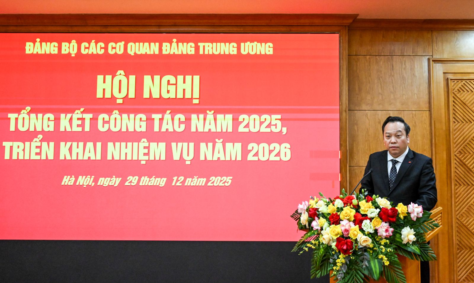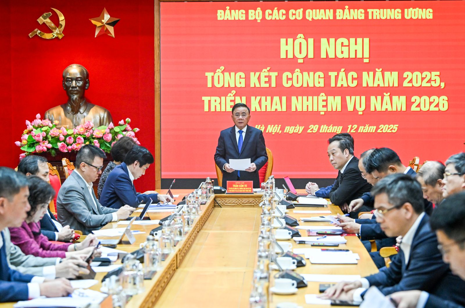 (ĐCSVN) - Chiều 29/12, Đảng bộ các cơ quan Đảng Trung ương tổ chức Hội nghị tổng kết công tác năm 2025, triển khai nhiệm vụ năm 2026. Đồng chí Trần Cẩm Tú, Ủy viên Bộ Chính trị, Thường trực Ban Bí thư, Bí thư Đảng ủy các cơ quan Đảng Trung ương chủ trì và phát biểu chỉ đạo Hội nghị.