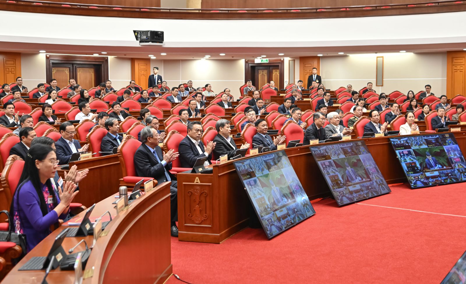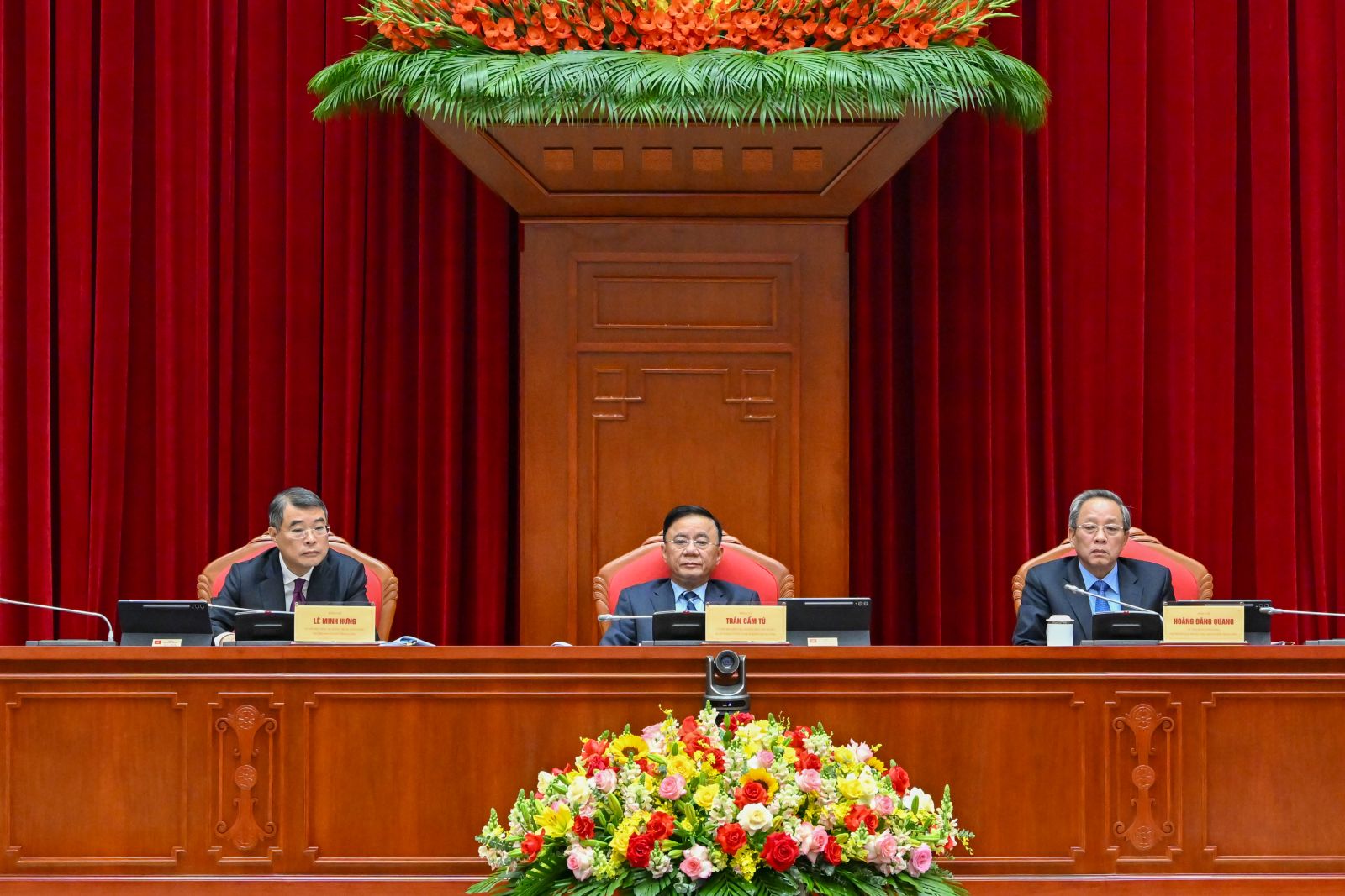 Đồng chí Thường trực Ban Bí thư Trần Cẩm Tú cùng các đồng chí Ủy viên Bộ Chính trị, Bí thư Trung ương Đảng, các đồng chí Ủy viên Trung ương Đảng, Ủy viên dự khuyết Trung ương Đảng, lãnh đạo các ban, bộ, ngành Trung ương và địa phương tham dự Hội nghị.