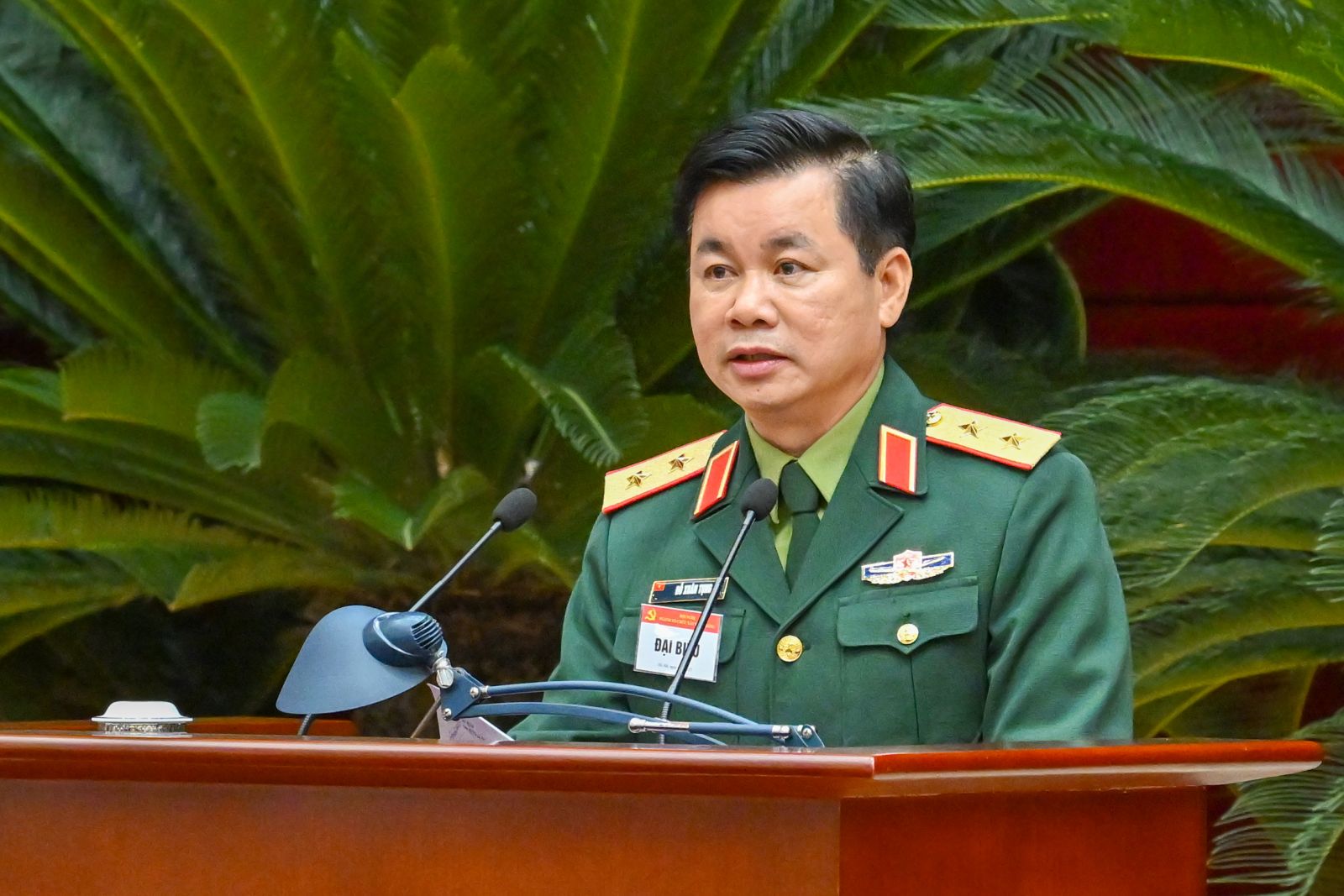 Đồng chí Trung tướng Đỗ Xuân Tụng, Phó Chủ nhiệm Tổng cục Chính trị Quân đội nhân dân Việt Nam trình bày tham luận tại Hội nghị.
