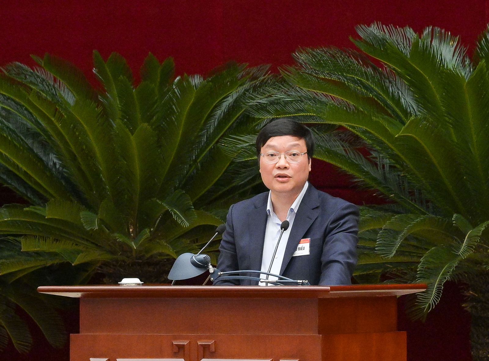 Đồng chí Hoàng Đăng Quang, Ủy viên Trung ương Đảng, Phó Trưởng Ban Thường trực Ban Tổ chức Trung ương điều hành phần tham luận tại Hội nghị.