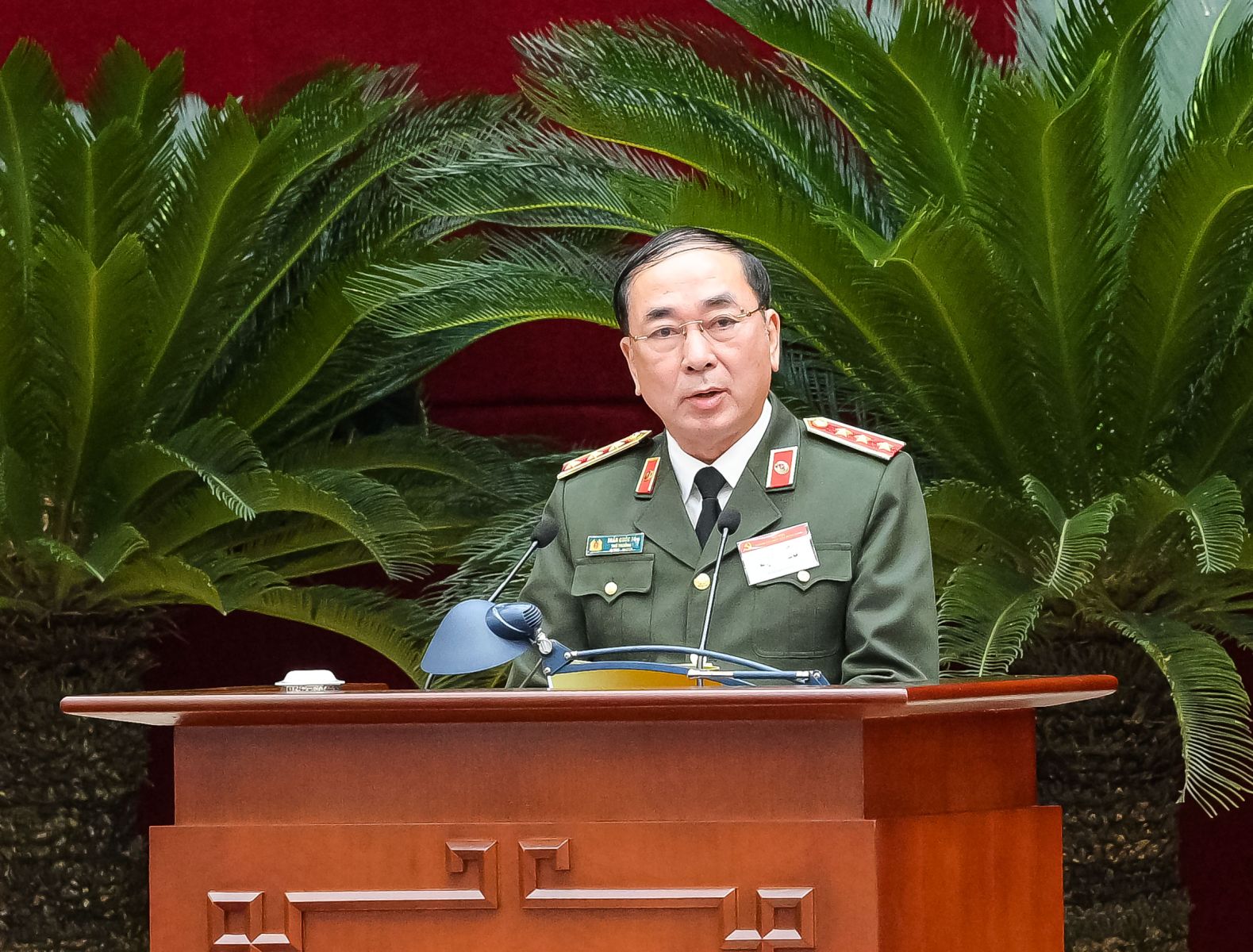 Đồng chí Thượng tướng Trần Quốc Tỏ, Ủy viên Trung ương Đảng, Thứ trưởng Bộ Công an trình bày tham luận tại Hội nghị.