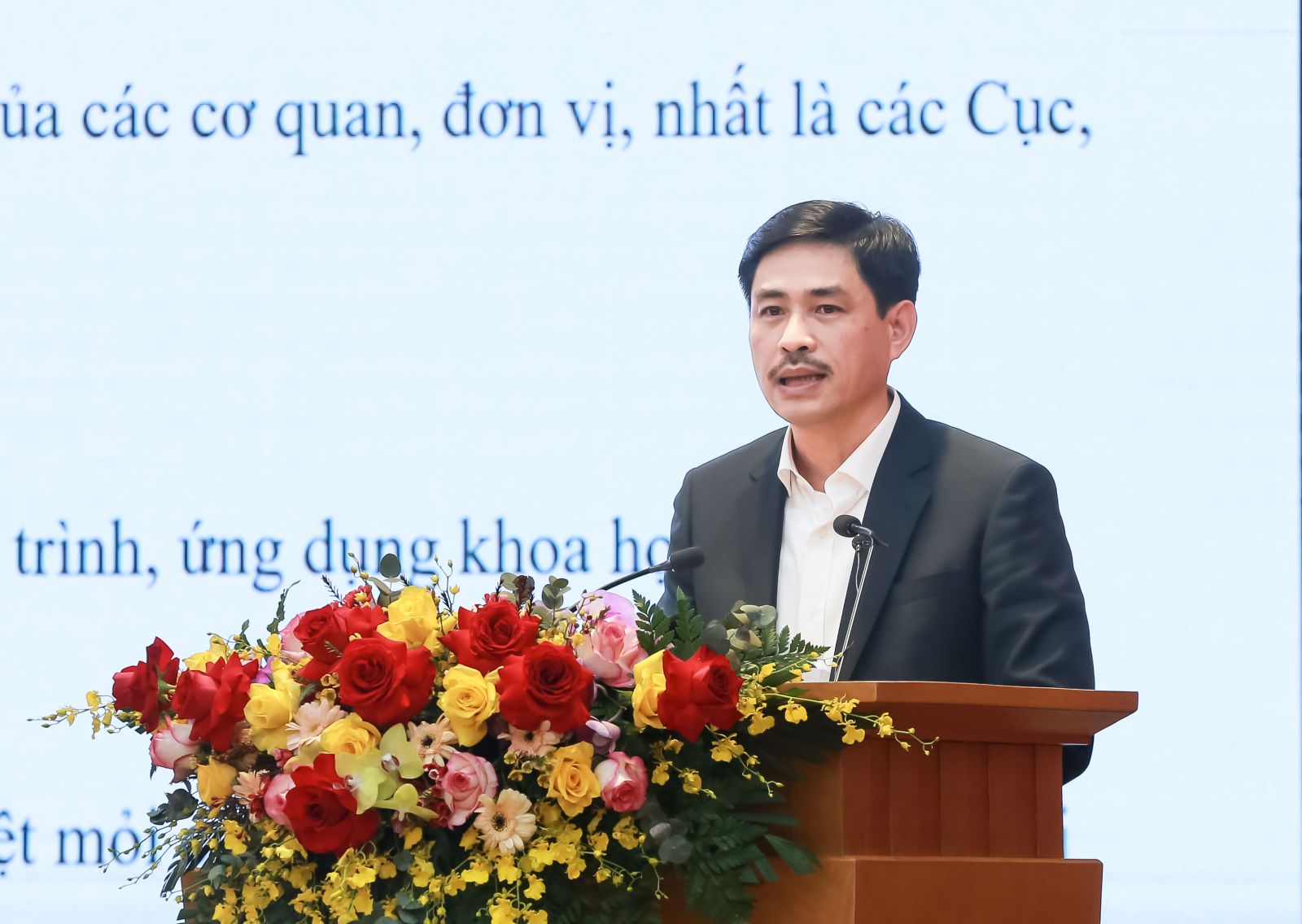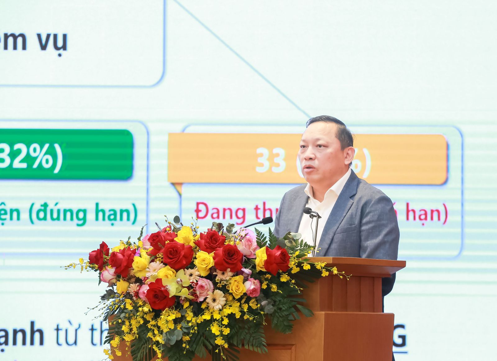 Đồng chí Nguyễn Văn Cường, Vụ trưởng Vụ Tham mưu tổng hợp trình bày tham luận tại Hội nghị.