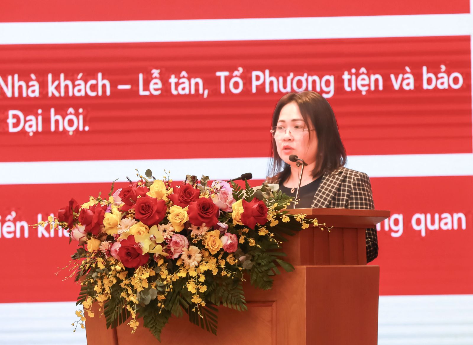 Đồng chí Lâm Thị Phương Thanh, Ủy viên Trung ương Đảng, Phó Chánh Văn phòng Thường trực Văn phòng Trung ương Đảng trình bày báo cáo tóm tắt tổng kết công tác năm 2025, triển khai nhiệm vụ năm 2026.