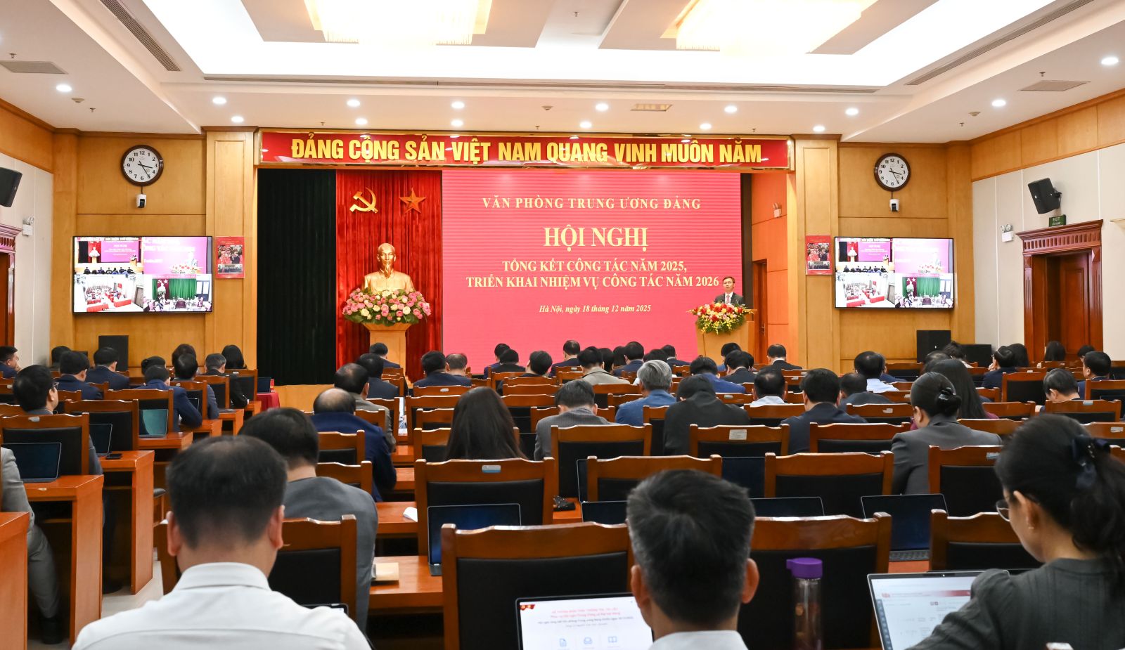 Quang cảnh Hội nghị tổng kết công tác năm 2025, triển khai nhiệm vụ công tác năm 2026 của Văn phòng Trung ương Đảng.