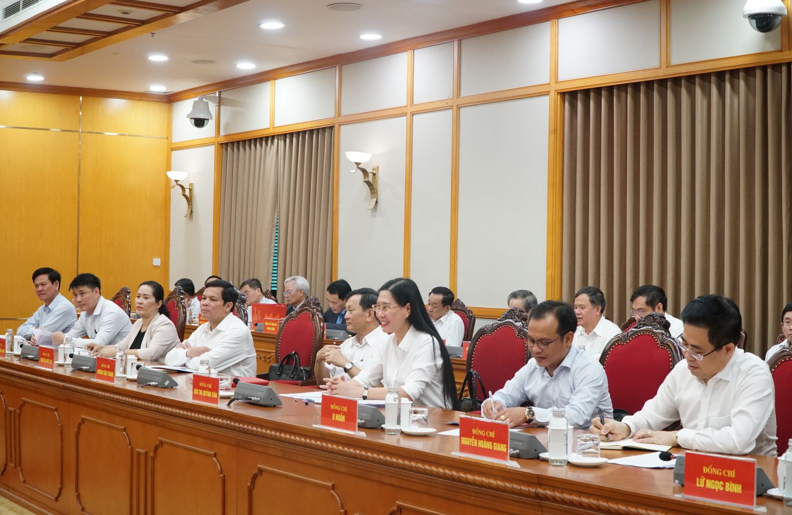 Tham dự buổi làm việc có các đồng chí: Nguyễn Trọng Nghĩa, Uỷ viên Bộ Chính trị, Bí thư Trung ương Đảng, Trưởng Ban Tuyên giáo và Dân vận Trung ương; Nguyễn Xuân Thắng, Uỷ viên Bộ Chính trị, Giám đốc Học viện Chính trị quốc gia Hồ Chí Minh, Chủ tịch Hội đồng Lý luận Trung ương; Phan Văn Giang, Uỷ viên Bộ Chính trị, Bộ trưởng Bộ Quốc phòng; Lê Minh Trí, Bí thư Trung ương Đảng, Chánh án Toà án nhân dân tối cao; đại diện lãnh đạo một số cơ quan Trung ương và lãnh đạo một số sở, ban, ngành của 2 địa phương.