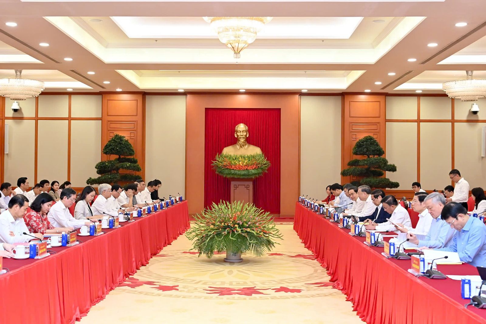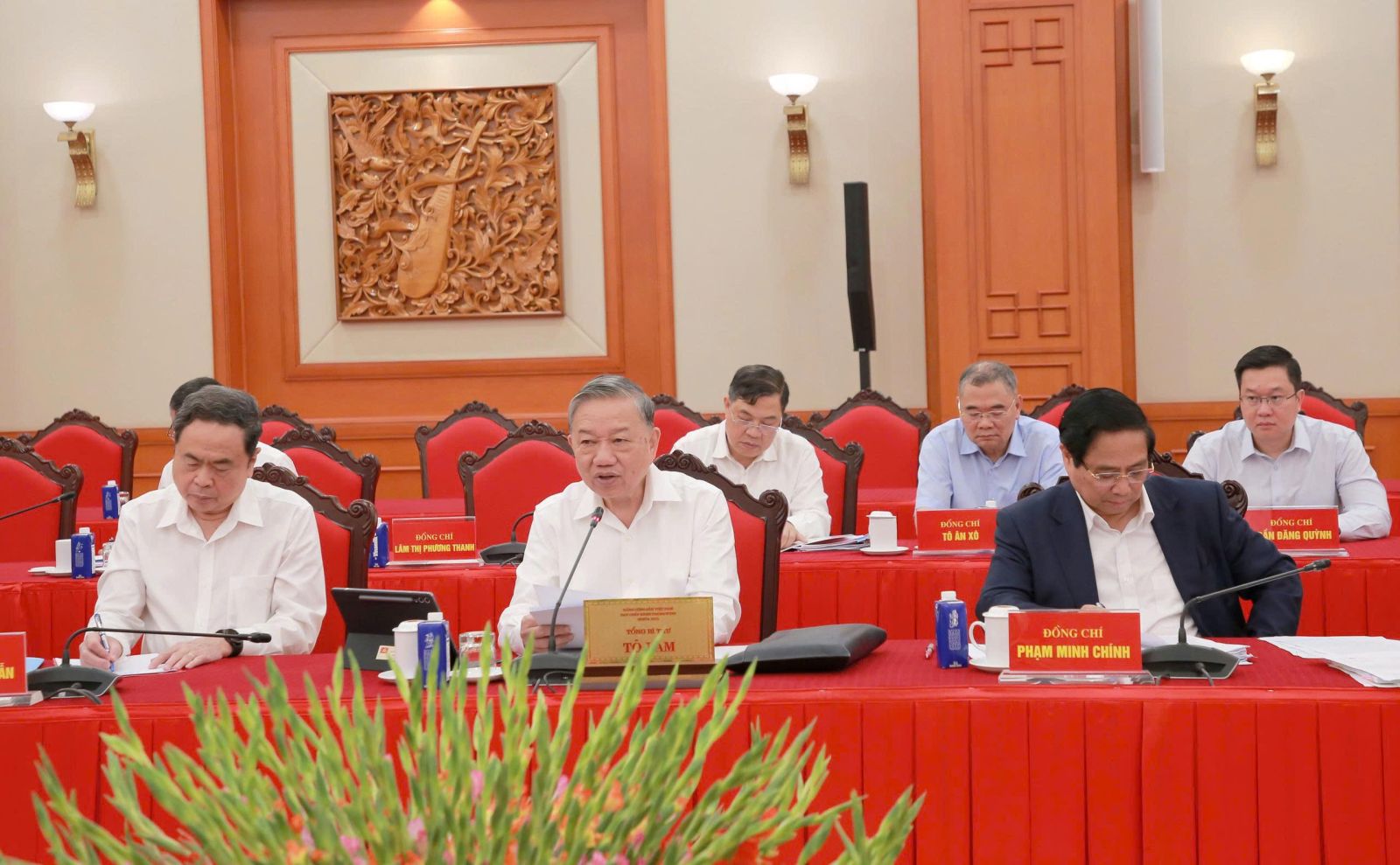 Kết luận buổi làm việc, đồng chí Tổng Bí thư Tô Lâm đề nghị Ban Thường vụ Đảng uỷ Mặt trận Tổ quốc, các đoàn thể Trung ương tiếp thu ý kiến của các đồng chí Uỷ viên Bộ Chính trị, ý kiến góp ý hợp lý của các ban, bộ, ngành Trung ương để hoàn thiện các văn kiện và phương án nhân sự, tiếp tục chuẩn bị chu đáo để tổ chức thành công Đại hội Đảng bộ nhiệm kỳ 2025 - 2030. Đồng chí Tổng Bí thư Tô Lâm nhấn mạnh trong nhiệm kỳ tới cần tập trung tổ chức thực hiện tốt một số nội dung: