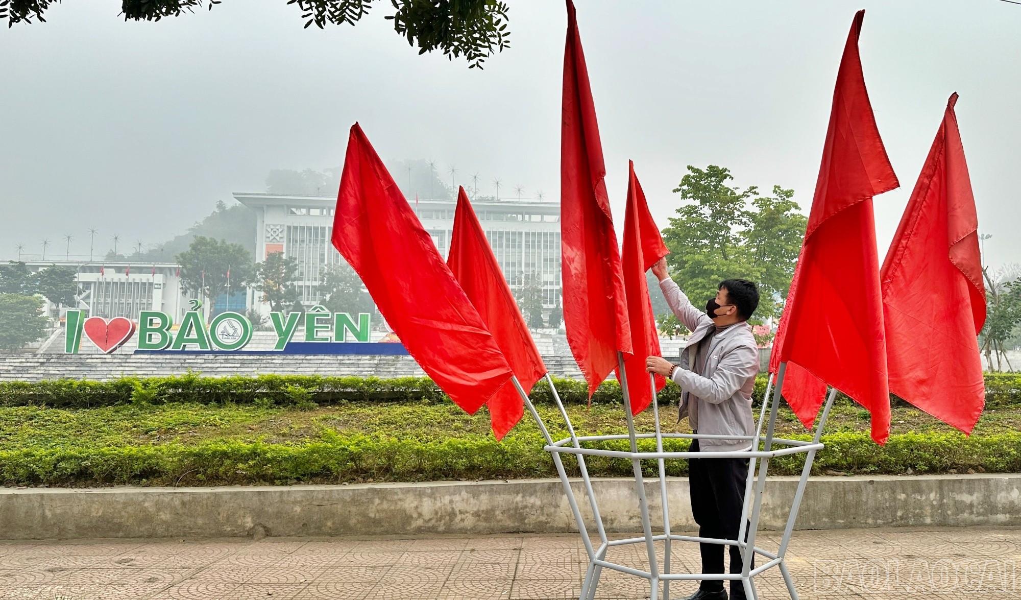 Nhiều tổ cờ đã được các cán bộ, nhân viên Trung tâm Văn hóa, Thể thao và Truyền thông khu vực Bảo Yên lắp đặt tại khu vực tòa hợp khối hành chính xã.