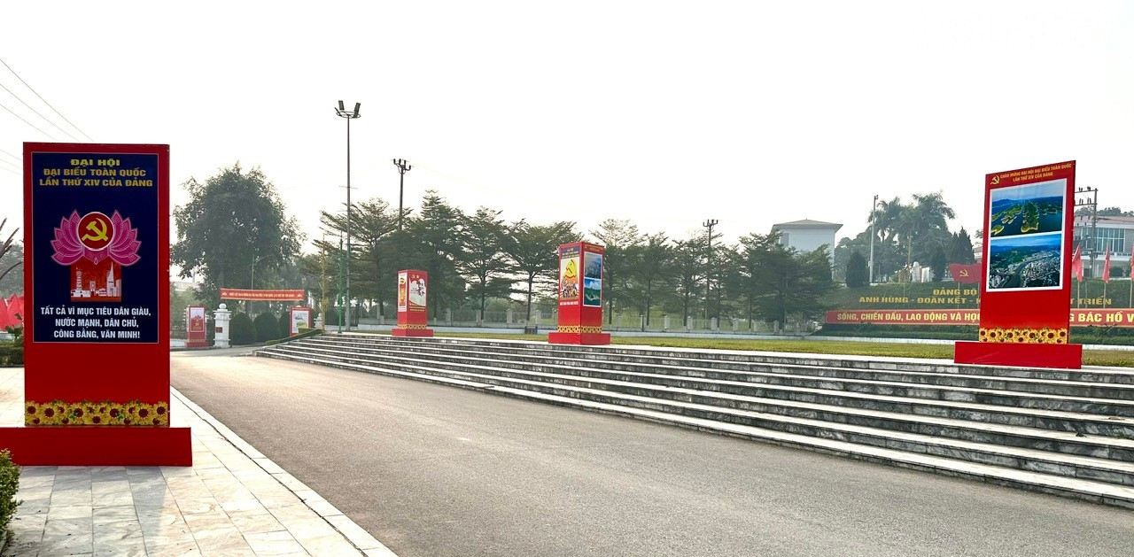 Trên các trục đường chính, tại khu trung tâm xã, trụ sở cơ quan và các trường học, cờ hoa được treo trang trọng, pa-nô, khẩu hiệu ngắn gọn, súc tích, thể hiện niềm tin vững chắc vào vai trò lãnh đạo của Đảng và hướng tới thành công của Đại hội đại biểu toàn quốc lần thứ XIV của Đảng.