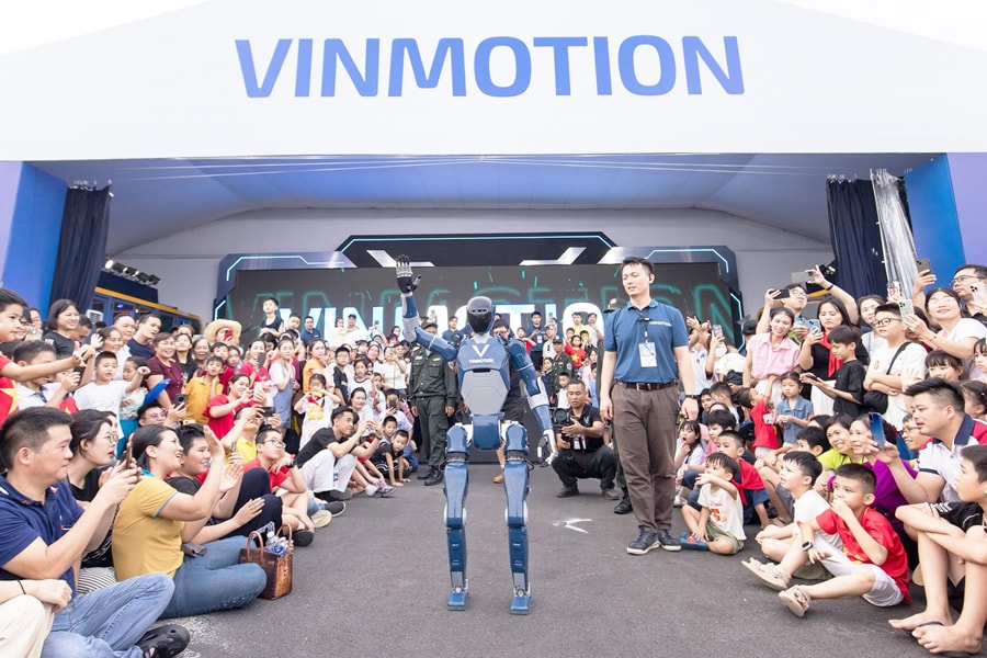 Người dân tham quan, trải nghiệm robot hình người đầu tiên “Made in Vietnam” của Tập đoàn Vingroup tại Triển lãm thành tựu đất nước “80 năm hành trình Độc lập - Tự do - Hạnh phúc”.