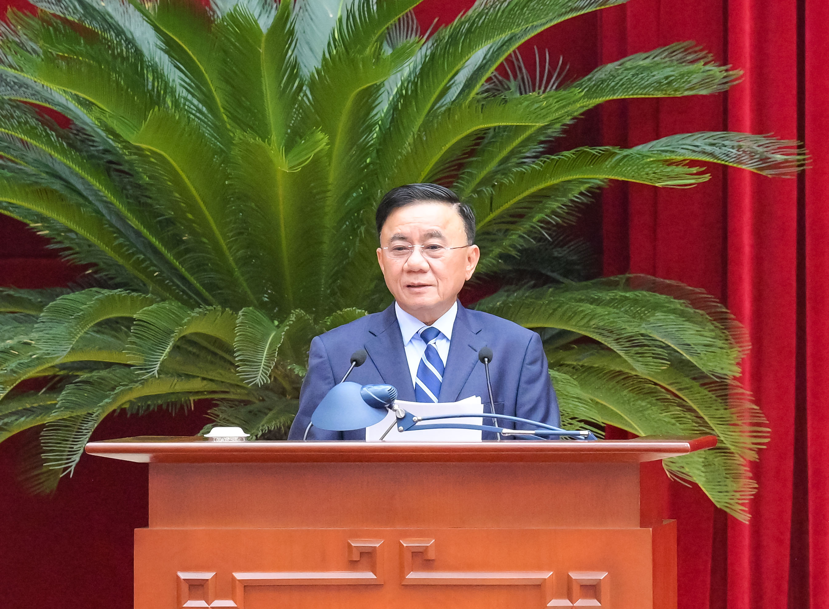 Đồng chí Lê Minh Hưng, Ủy viên Bộ Chính trị, Bí thư Trung ương Đảng, Trưởng Ban Tổ chức Trung ương phát biểu tại Hội nghị.