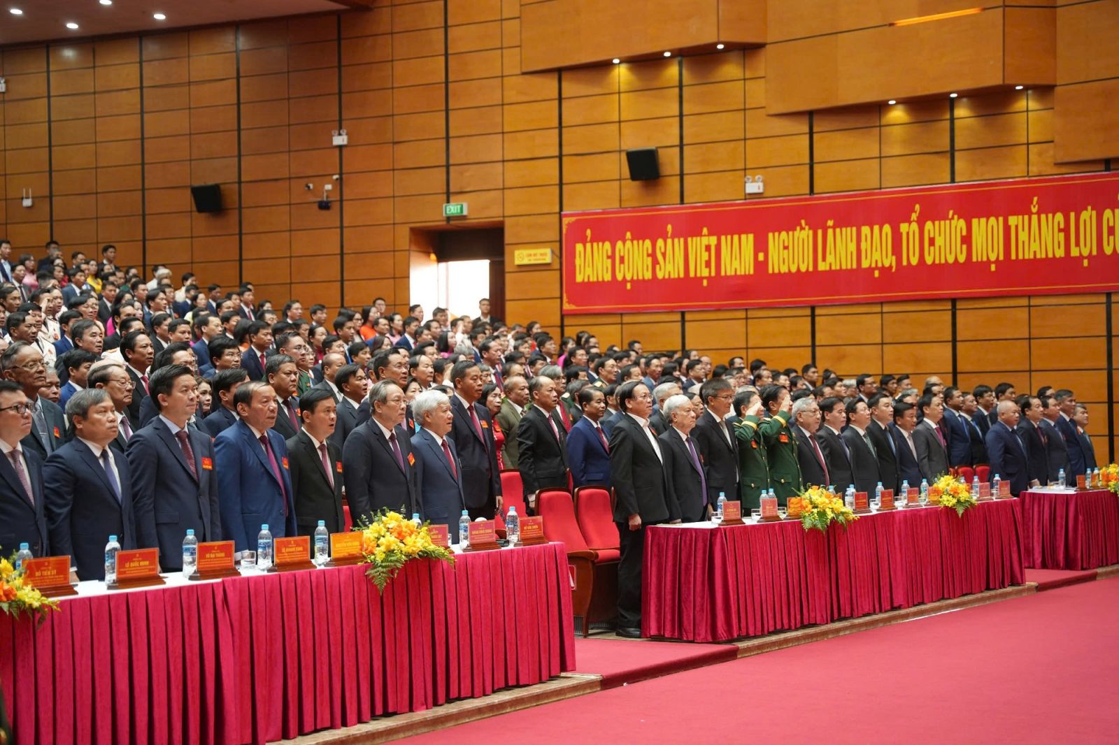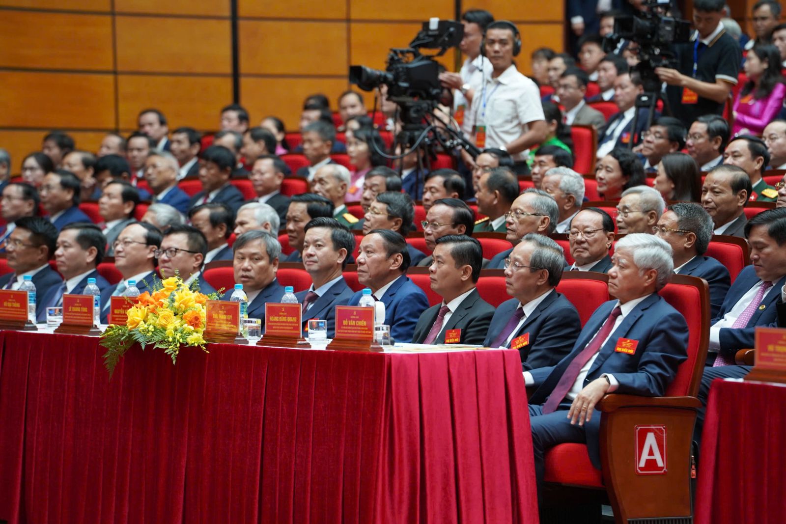 Đại hội vinh dự đón nhận lẵng hoa chúc mừng của Ban Chấp hành Trung ương Đảng, Tổng Bí thư Tô Lâm; đồng chí Trần Thanh Mẫn, Ủy viên Bộ Chính trị, Chủ tịch Quốc hội; đồng chí Đỗ Văn Chiến, Ủy viên Bộ Chính trị, Bí thư Trung ương Đảng, Chủ tịch Ủy ban Trung ương Mặt trận Tổ quốc Việt Nam.