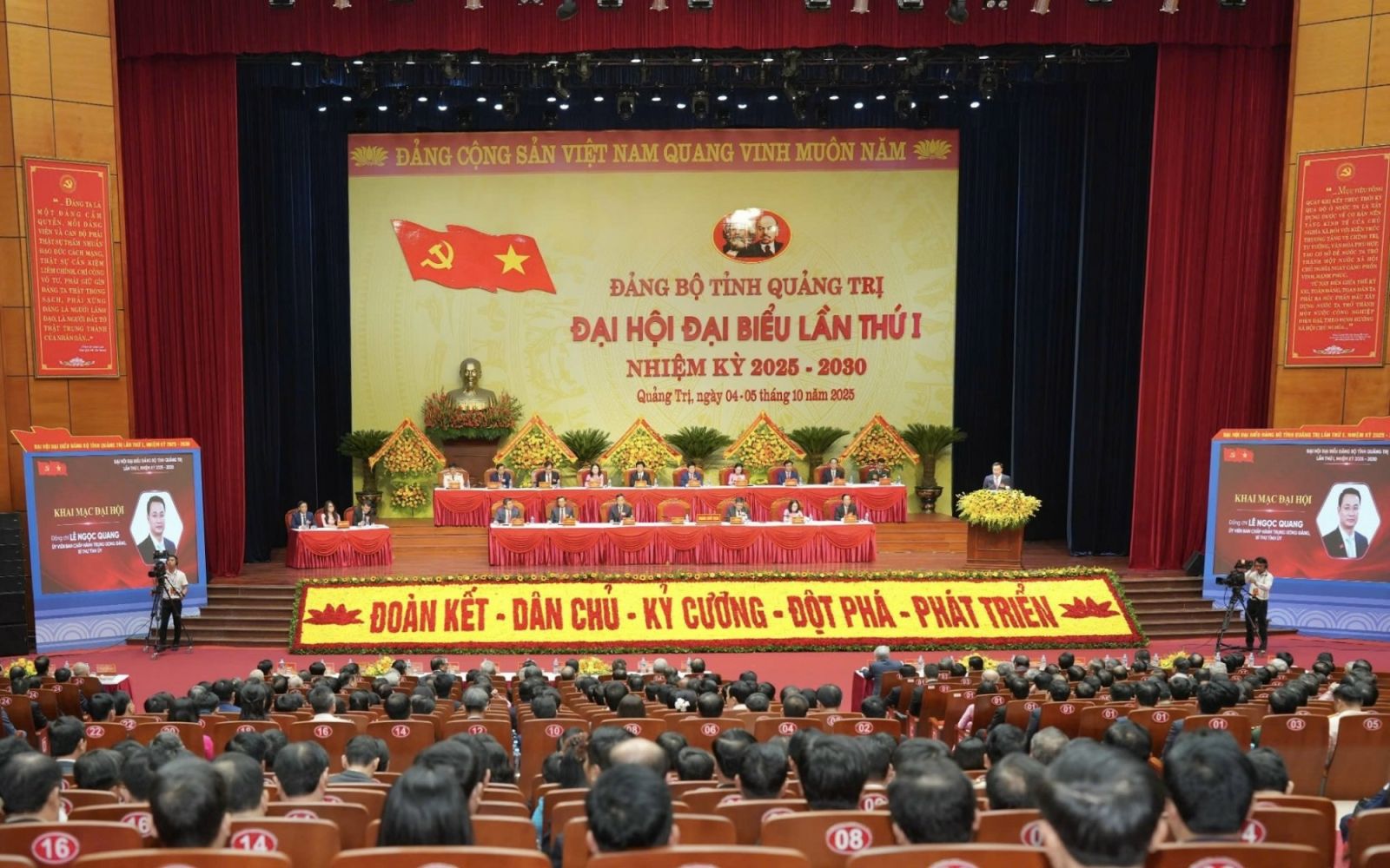 Đồng chí Lê Ngọc Quang khẳng định: Đại hội đại biểu Đảng bộ tỉnh Quảng Trị lần thứ I là sự kiện có ý nghĩa lịch sử đặc biệt - kỳ Đại hội đầu tiên của tỉnh mới hợp nhất, mở ra thời kỳ phát triển và đổi thay mạnh mẽ, đánh dấu bước ngoặt trong hành trình cách mạng của Đảng bộ. Đại hội xác định chủ đề: “Xây dựng Đảng bộ và hệ thống chính trị trong sạch, vững mạnh; phát huy sức mạnh đại đoàn kết toàn dân và khát vọng phát triển; huy động và sử dụng hiệu quả mọi nguồn lực; đẩy mạnh đổi mới sáng tạo, chuyển đổi số; phấn đấu đưa Quảng Trị trở thành cực tăng trưởng mới của khu vực miền Trung”. Chủ đề ấy thể hiện quyết tâm chính trị cao, khát vọng vươn lên mạnh mẽ của toàn Đảng bộ, chính quyền và Nhân dân trong tỉnh, đồng thời cũng là mong đợi, kỳ vọng của Trung ương và đồng bào cả nước dành cho Quảng Trị.