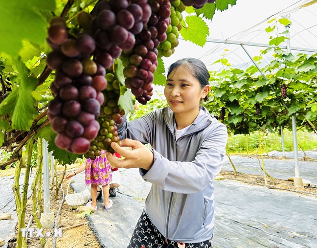 | Mô hình trông vườn nho Hạ đen giúp người dân phát triển kinh tế thoát nghèo bền vững. (Ảnh: Đức Thọ/TTXVN) |