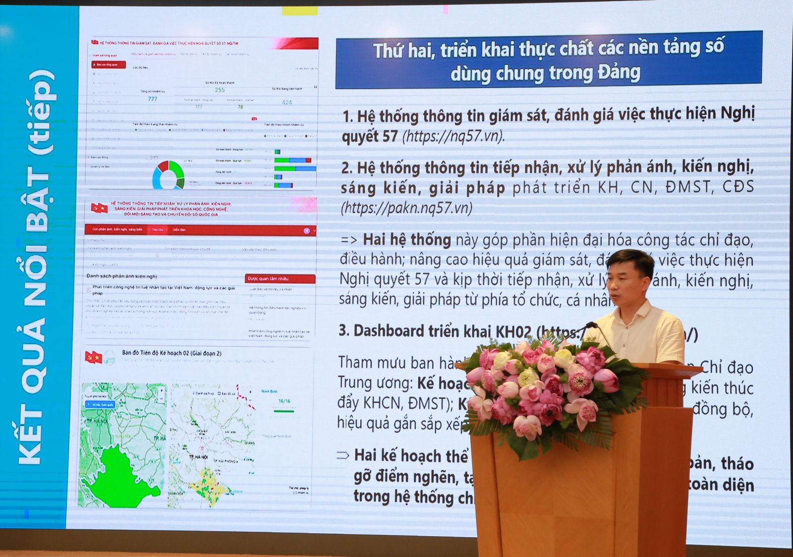 Về chuyển đổi số, Văn phòng làm tốt vai trò là Thường trực Ban Chỉ đạo Trung ương về phát triển khoa học, công nghệ, đổi mới sáng tạo và chuyển đổi số; quản lý vận hành thông suốt hệ thống công nghệ thông tin phục vụ hoạt động của Trung ương, Văn phòng; vận hành hiệu quả Cổng thông tin điện tử Đảng Cộng sản Việt Nam.