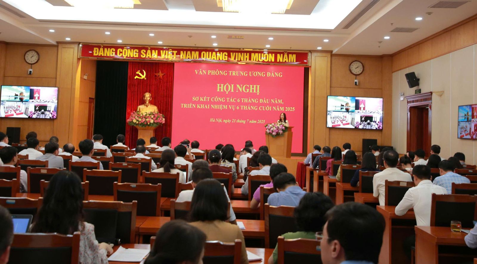 Báo cáo kết quả công tác 6 tháng đầu năm, nhiệm vụ công tác 6 tháng cuối năm 2025, Phó Chánh Văn phòng Thường trực Văn phòng Trung ương Đảng Lâm Thị Phương Thanh nêu rõ: 6 tháng đầu năm 2025, trong bối cảnh nhiều khó khăn, Văn phòng Trung ương Đảng đã chủ động, sáng tạo, nêu cao tinh thần trách nhiệm, hoàn thành khối lượng lớn công việc, phục vụ hiệu quả sự lãnh đạo, chỉ đạo của Ban Chấp hành Trung ương, Bộ Chính trị, Ban Bí thư và các đồng chí lãnh đạo chủ chốt.