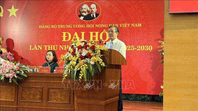 Phát biểu chỉ đạo Đại hội, đồng chí Ngô Văn Cương, Phó Bí thư chuyên trách Đảng ủy Mặt trận Tổ quốc (MTTQ), các đoàn thể Trung ương chúc mừng, biểu dương những thành tích nổi bật của Đảng bộ Trung ương Hội Nông dân Việt Nam trong nhiệm kỳ qua. Để hoàn thành thắng lợi các mục tiêu đề ra trong nhiệm kỳ 2025–2030, đồng chí Ngô Văn Cương đề nghị Đại hội và toàn Đảng bộ cần tập trung triển khai hiệu quả 5 nhiệm vụ trọng tâm gồm: Tiếp tục xây dựng Đảng về tư tưởng, chính trị, đạo đức; nâng cao chất lượng tổ chức và đội ngũ cán bộ; tăng cường kiểm tra, giám sát; đổi mới phương thức lãnh đạo theo hướng rõ người, rõ việc, rõ trách nhiệm; đẩy mạnh thực hiện các nghị quyết trọng điểm, phát triển khoa học công nghệ, hỗ trợ nông dân khởi nghiệp và chuyển đổi số.