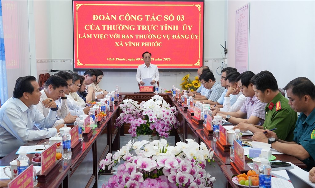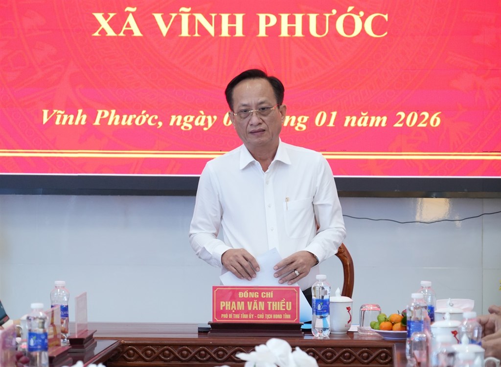 Sáng 09/01, đoàn công tác của Thường trực Tỉnh ủy do Phó Bí thư Tỉnh ủy, Chủ tịch HĐND tỉnh Phạm Văn Thiều làm trưởng đoàn có buổi làm việc với Đảng ủy xã Vĩnh Phước về thực hiện chính quyền địa phương 02 cấp và công tác triển khai nghị quyết Đại hội đại biểu Đảng bộ các cấp, nhiệm kỳ 2025–2030.