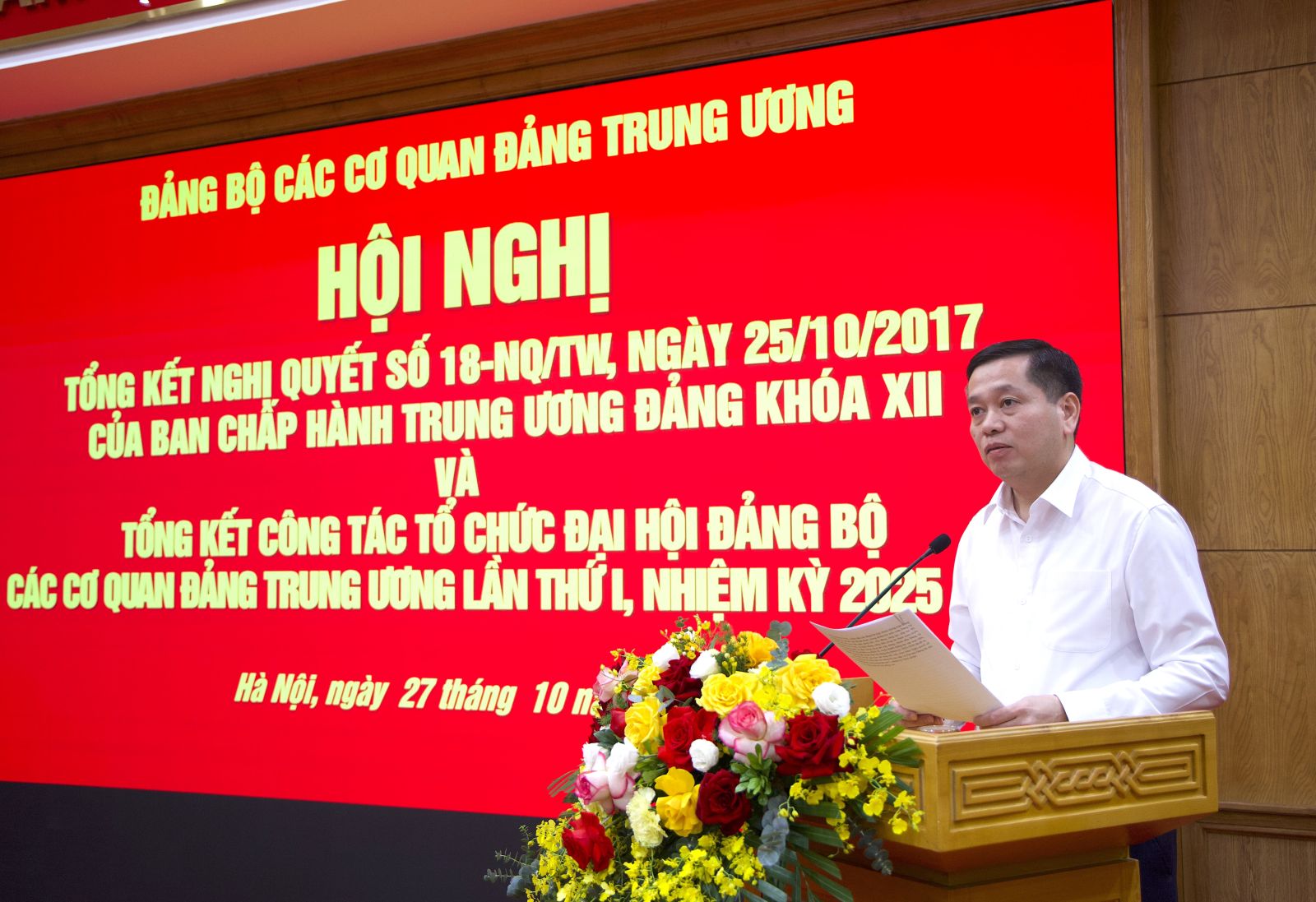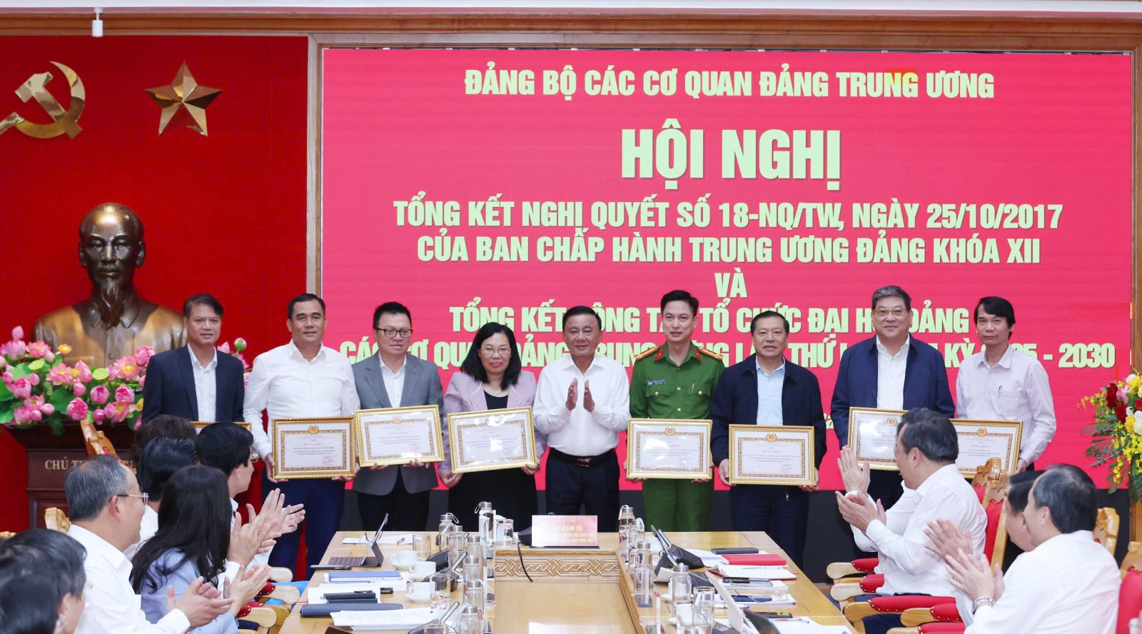 (ĐCSVN) - Sáng 27/10, Đảng ủy các cơ quan Đảng Trung ương tổ chức Hội nghị tổng kết Nghị quyết số 18-NQ/TW ngày 25/10/2017 của Ban Chấp hành Trung ương Đảng khoá XII và tổng kết công tác tổ chức Đại hội Đảng bộ các cơ quan Đảng Trung ương lần thứ I, nhiệm kỳ 2025-2030. Đồng chí Trần Cẩm Tú, Ủy viên Bộ Chính trị, Thường trực Ban Bí thư, Bí thư Đảng ủy các cơ quan Đảng Trung ương chủ trì Hội nghị.