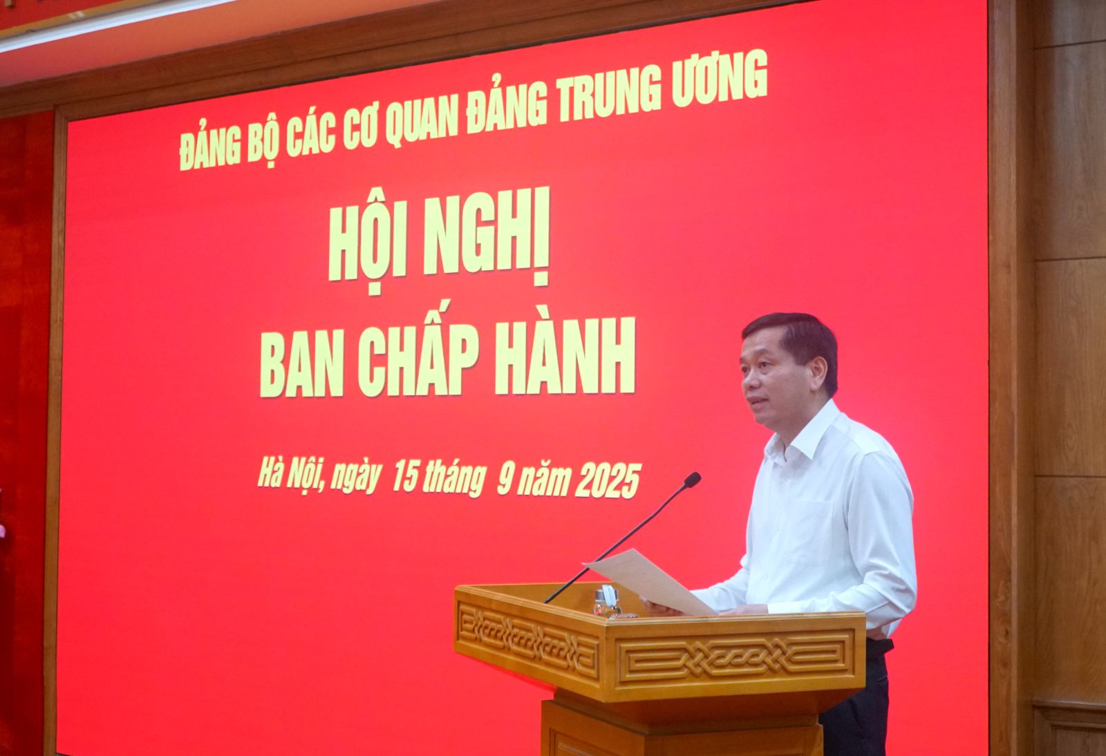 Buổi chiều, tại Hội nghị Ban Chấp hành, đồng chí Nguyễn Long Hải, Phó Bí thư Thường trực Đảng ủy các cơ quan Đảng Trung ương đã công bố các quyết định chỉ định tham gia Ban Thường vụ, Ban Chấp hành Đảng bộ các cơ quan Đảng Trung ương nhiệm kỳ 2020-2025.