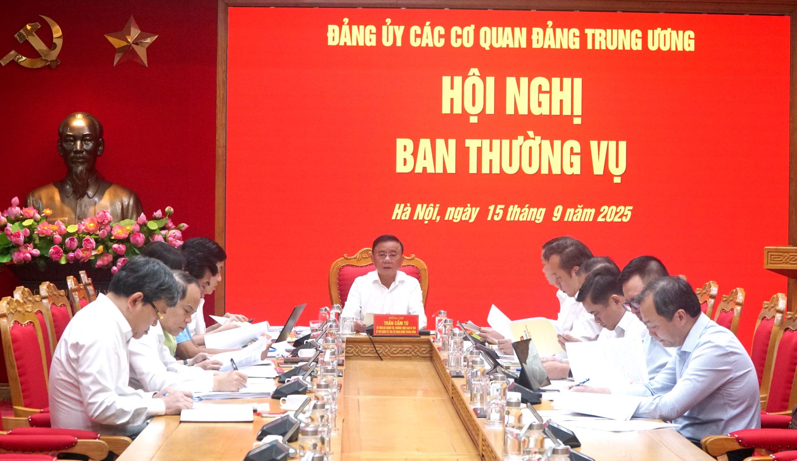 Buổi sáng, Hội nghị Ban Thường vụ Đảng ủy cho ý kiến công tác chuẩn bị Đại hội đại biểu Đảng bộ các cơ quan Đảng Trung ương lần thứ I, nhiệm kỳ 2025-2030 và thực hiện quy trình giới thiệu nhân sự đại biểu dự Đại hội XIV của Đảng.