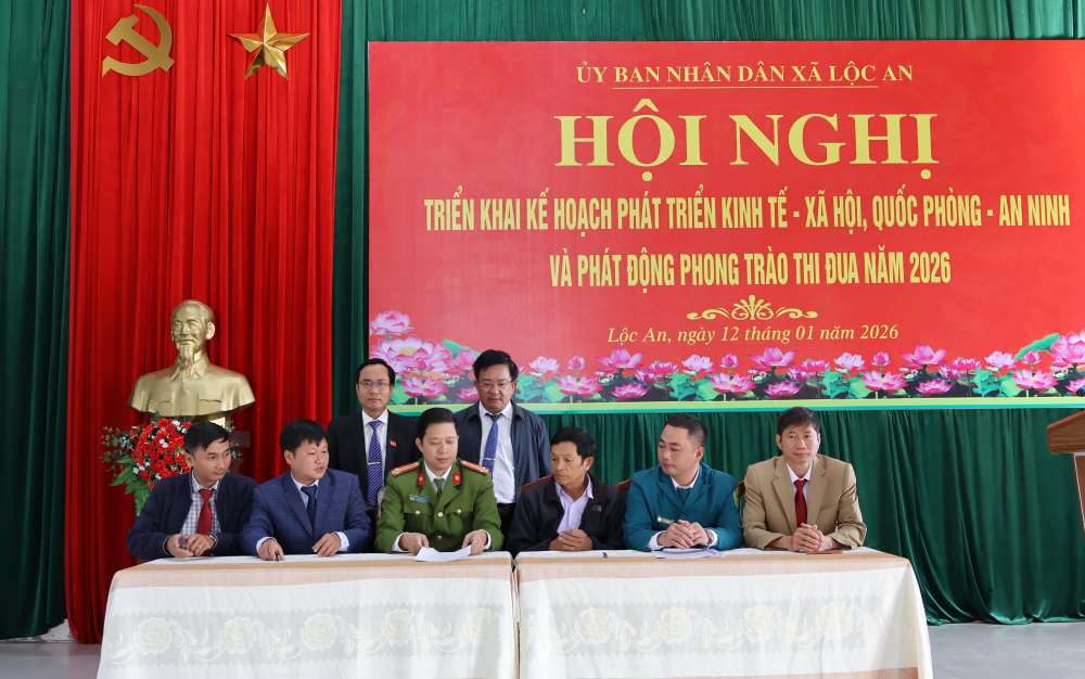 Tại hội nghị, UBND xã Lộc An đã phát động các phong trào thi đua và kí kết giao ước thi đua năm 2026; ký kết biên bản liên tịch triển khai thực hiện nhiệm vụ quốc phòng - an ninh năm 2026. Cũng trong dịp này, UBND xã đã trao tặng giấy khen cho các tập thể, cá nhân có thành tích xuất sắc trong công tác thực hiện nhiệm vụ năm 2025.